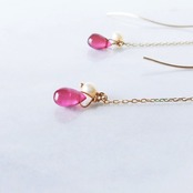 鮮やかなレッドが美しいルビーにベビーパールを添えたアメリカンピアス