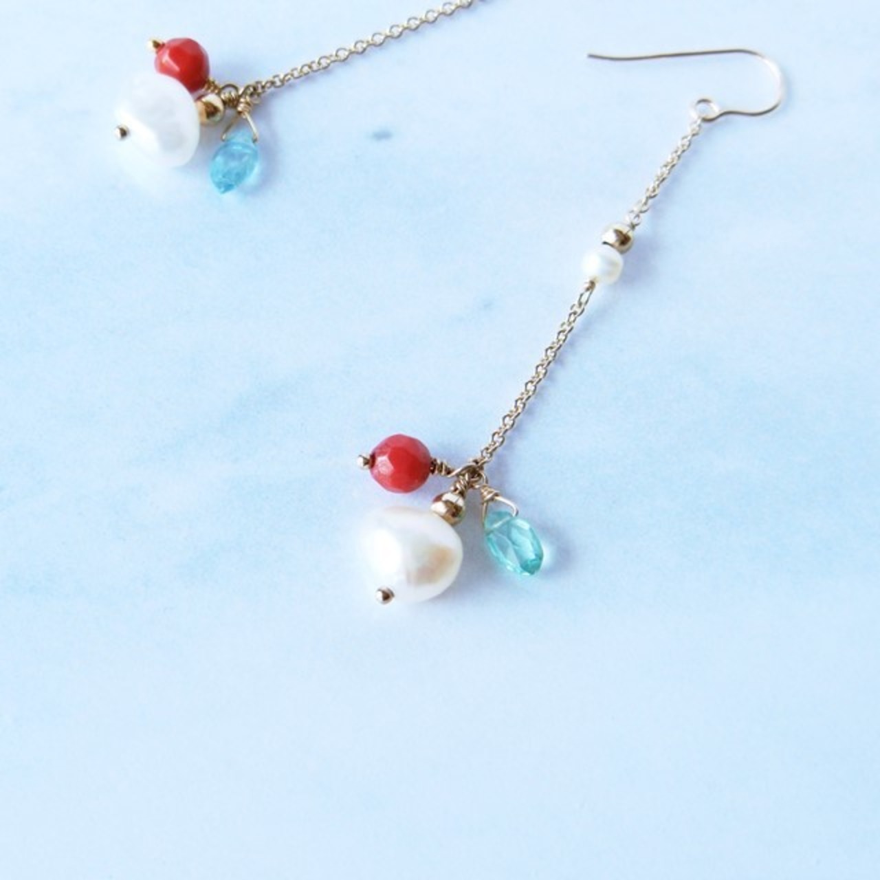 トリコロールカラーの天然石が揺れる、大人可愛いケシパールのピアス