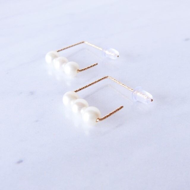 3粒の可憐なパールとクールな印象のスクエアワイヤーがマリアージュしたピアス