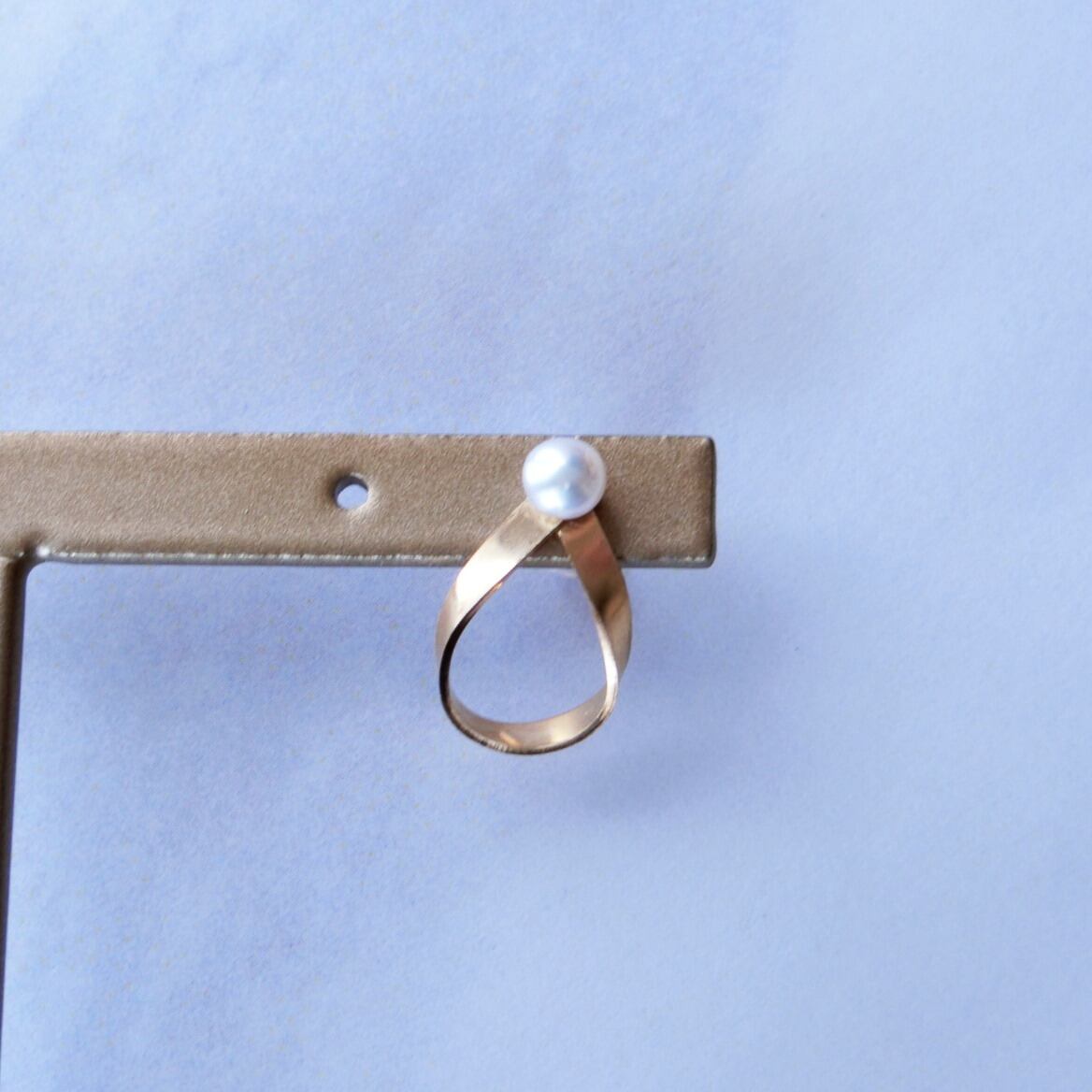 直径3mmの小さなパールとしずく型のゴールドチャームのコンビピアス。