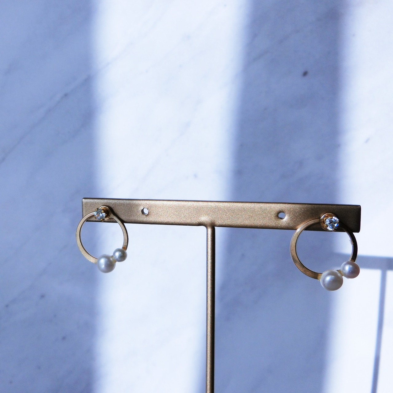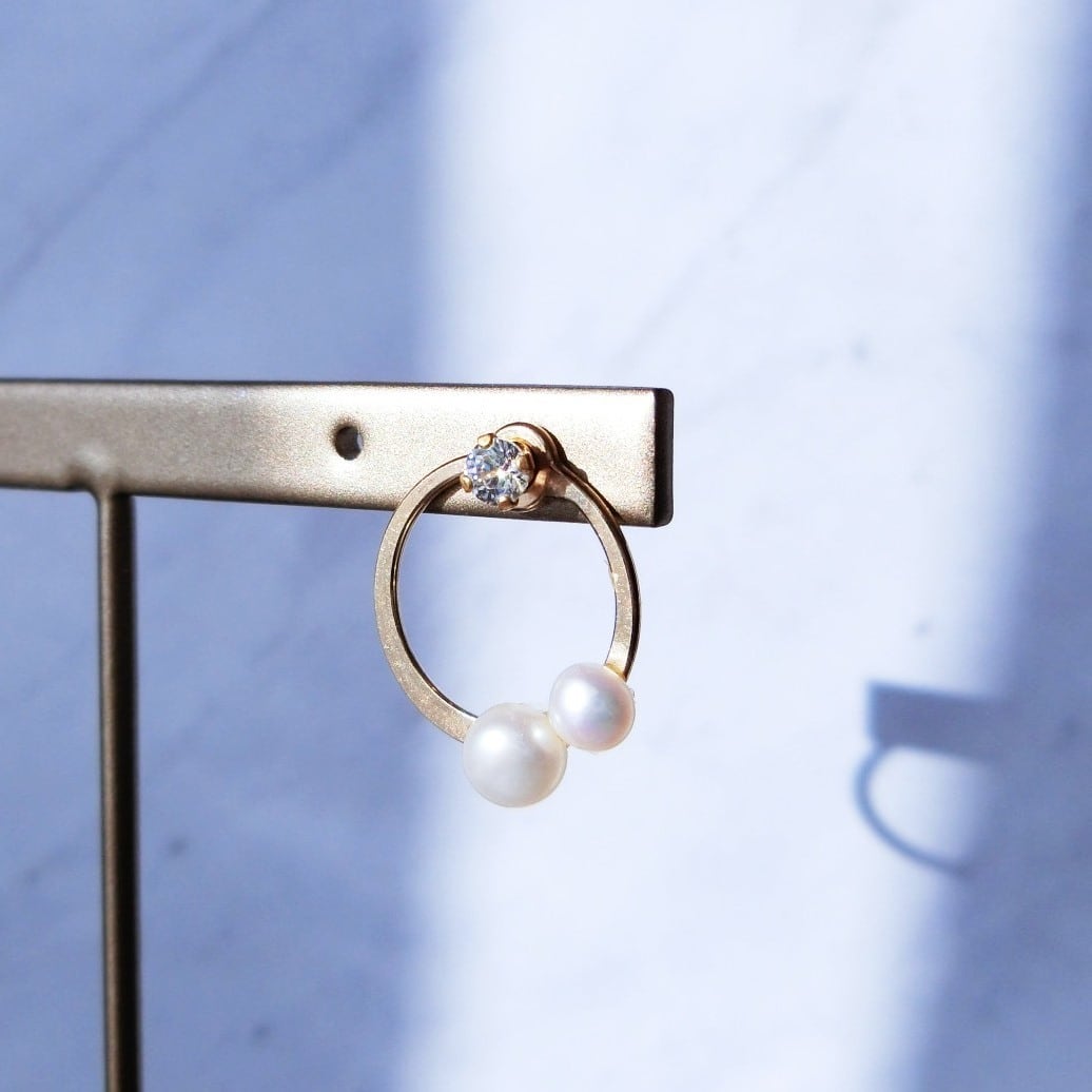パールとダイヤモンドのような美しい輝きを持つキュービックジルコニア(CZ)のフープピアスです。
