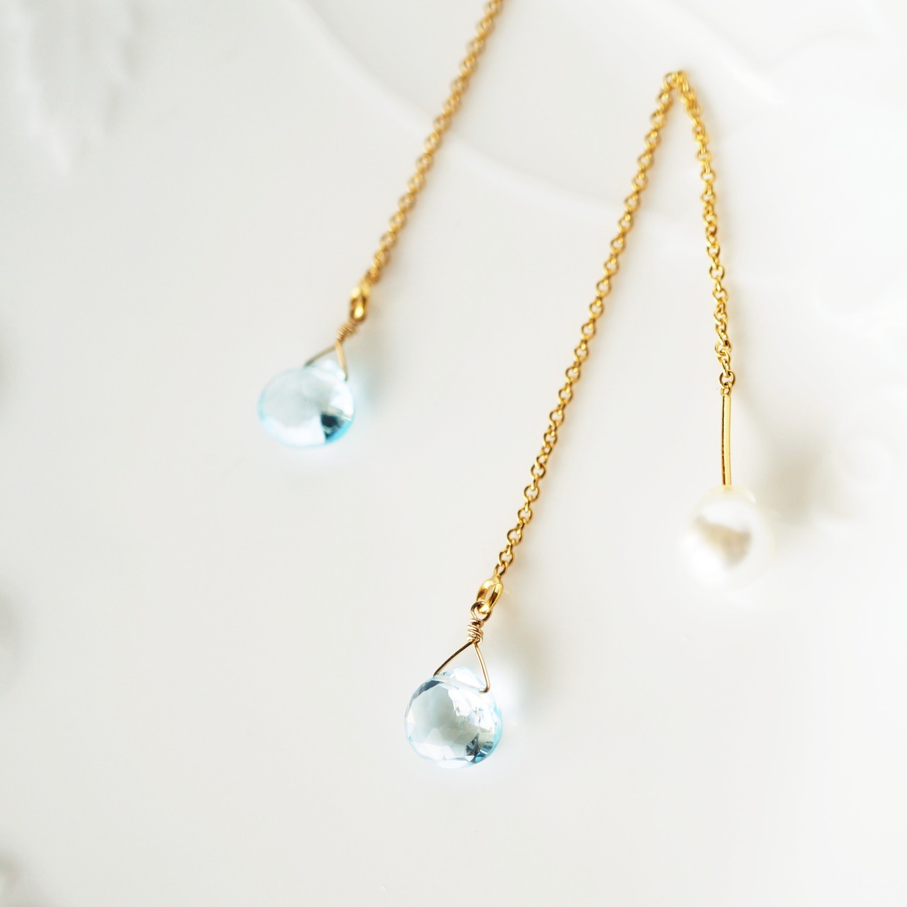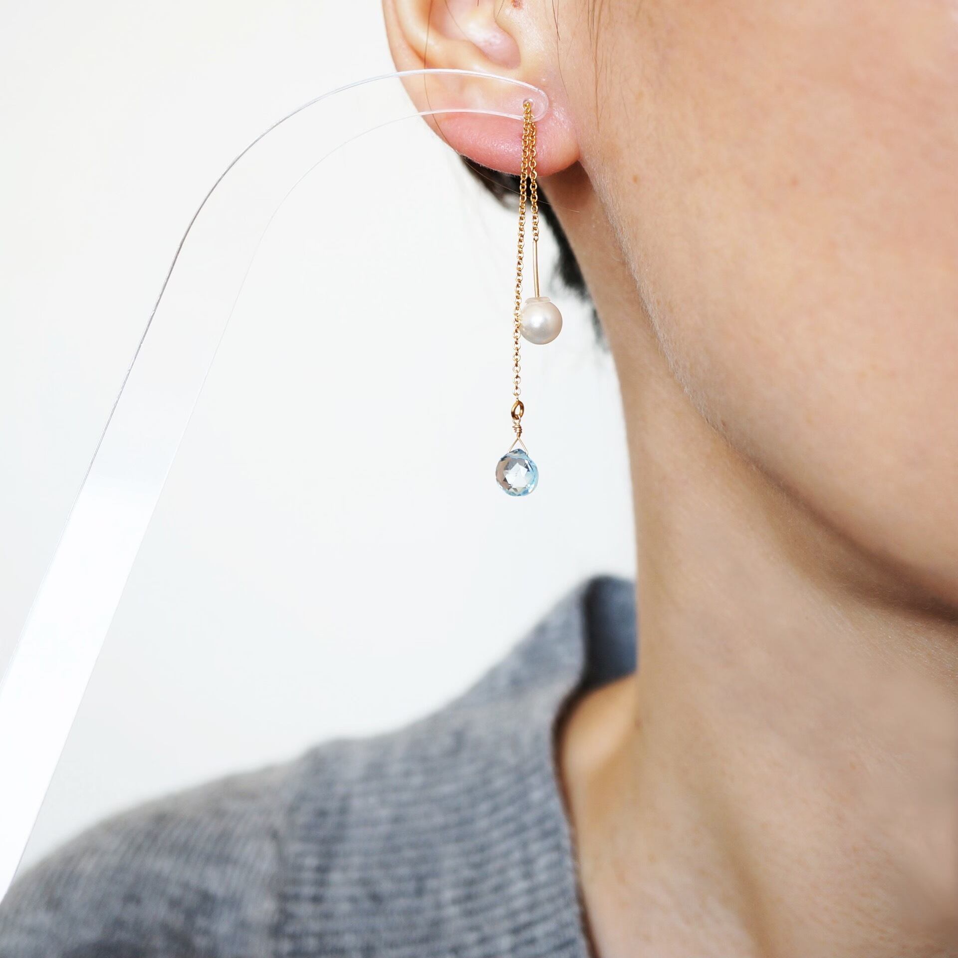 パールキャッチを外して、ブルートパーズのみでも、よりシンプルにさらっと身に付けて頂けます。