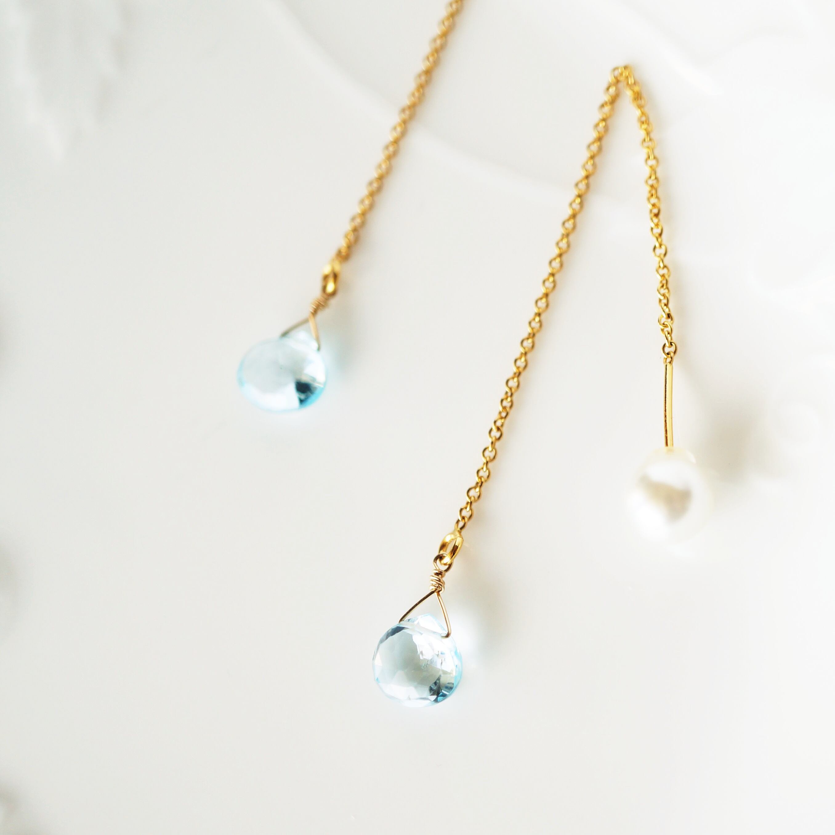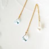 K14gf 天然石 ブルートパーズと貝パールのアメリカンピアス / 14金ゴールドフィルド チェーンピアス