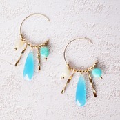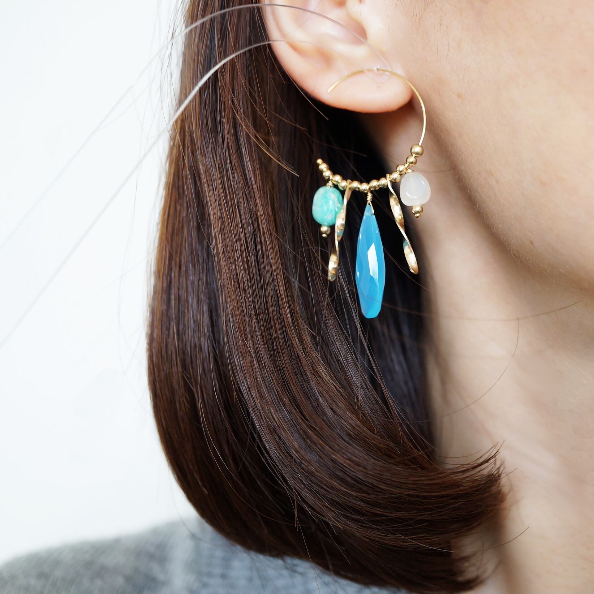 フリンジをイメージしブルーカルセドニーのフープピアス。